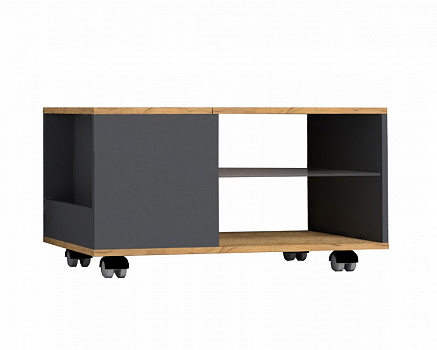 Колесная опора позволит менять положение столика в комнате. Открытые ниши пригодятся для хранения книг, журналов, пульта и других вещей.