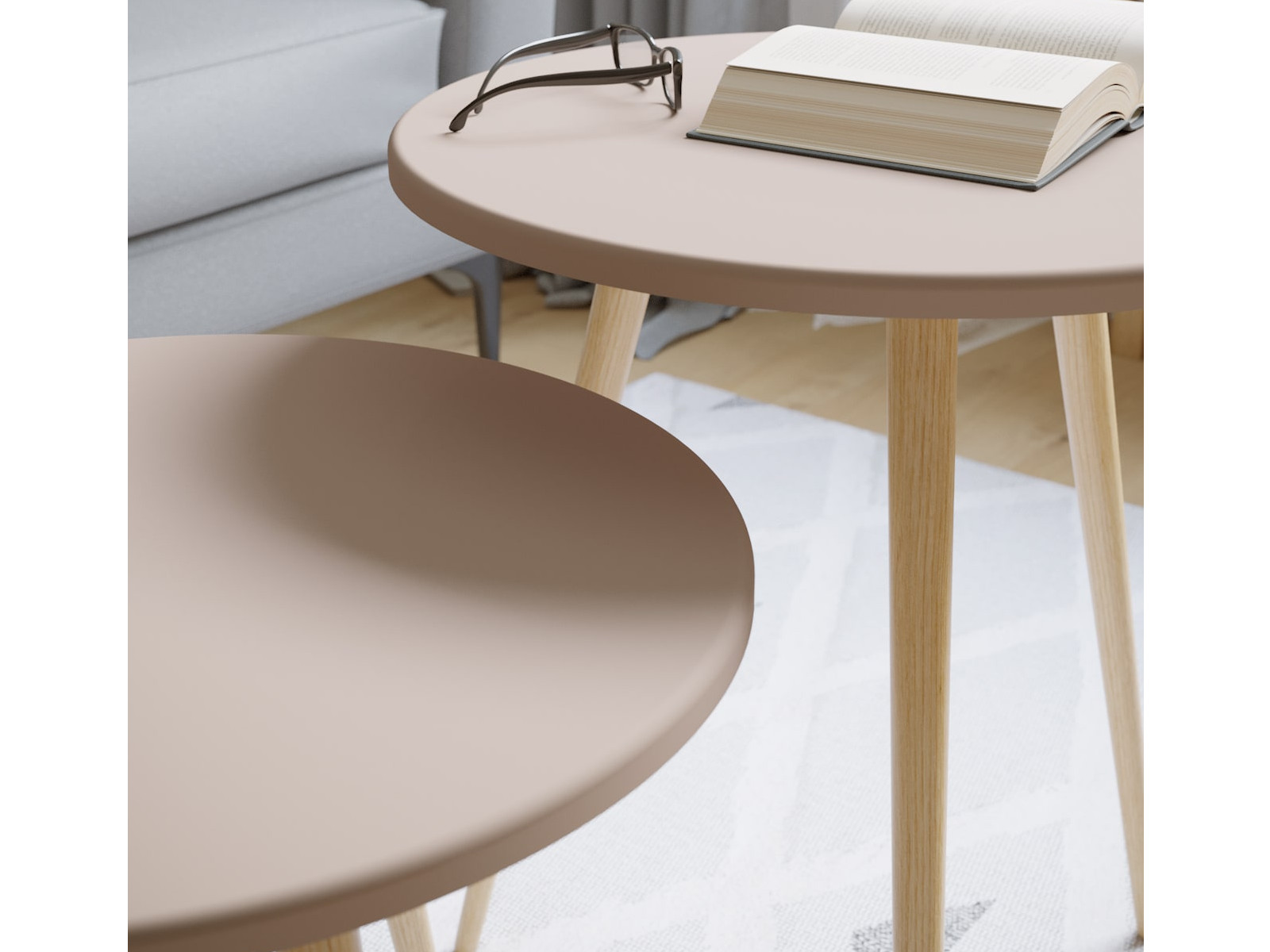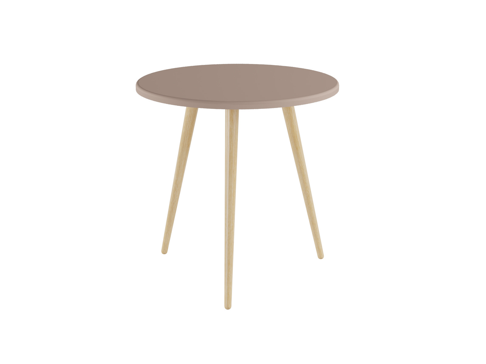 В дизайне использована простая геометрия столешницы в сочетании с деревянными опорами.