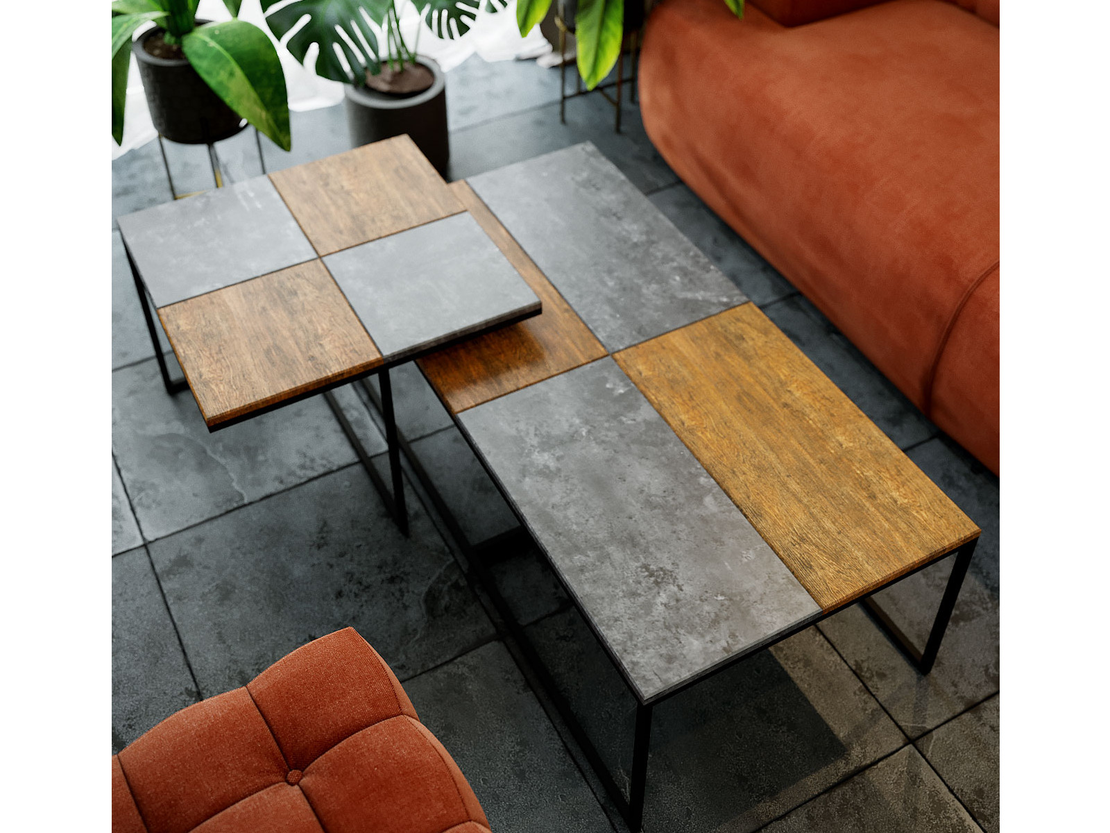- Стол журнальный Фьюжн Дуб американский/серый бетон