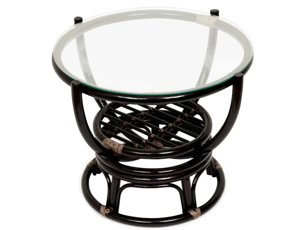 Материал: основание - натуральный ротанг (высший сорт), столешница - закалённое стекло.