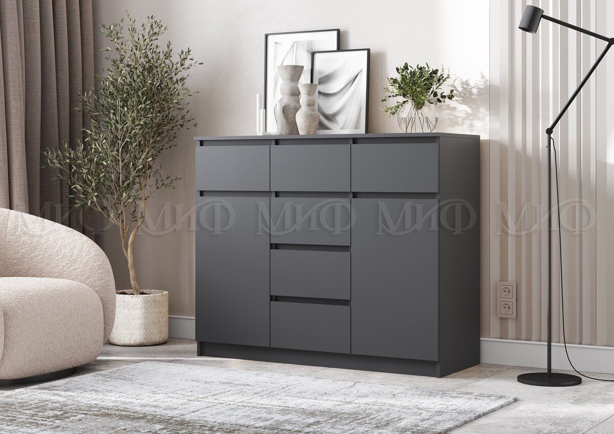 - Комод 1200 (2 двери 6 ящиков) Челси Графит