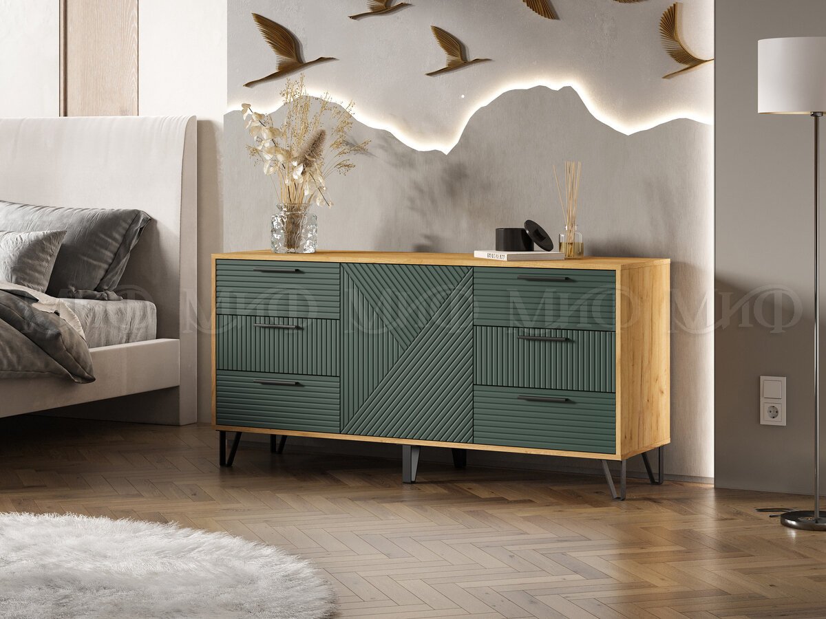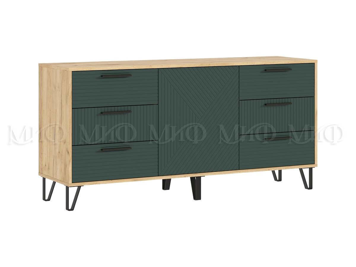 - Комод (1500) Флэш Браш Мени Грин, Дуб Крафт