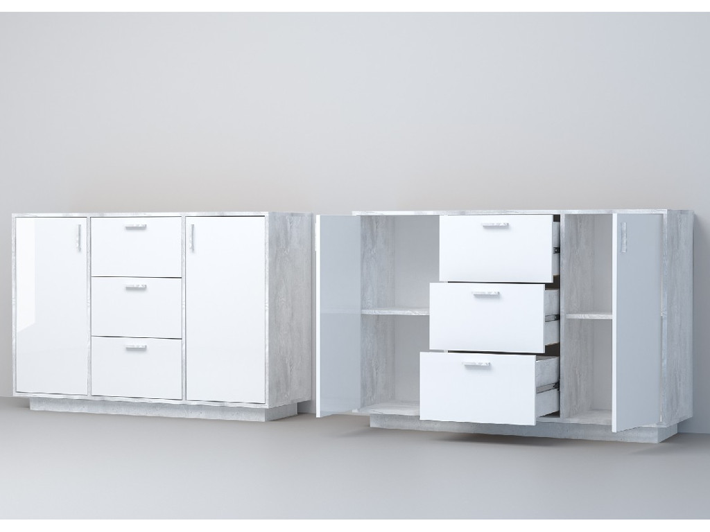 Комод Эго К-2 бетон светлый/белый глянец на цоколе