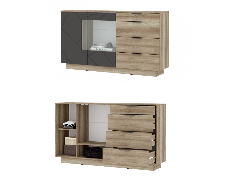 - Комод КМ 02 1704 4 ящика со стеклом Даллас