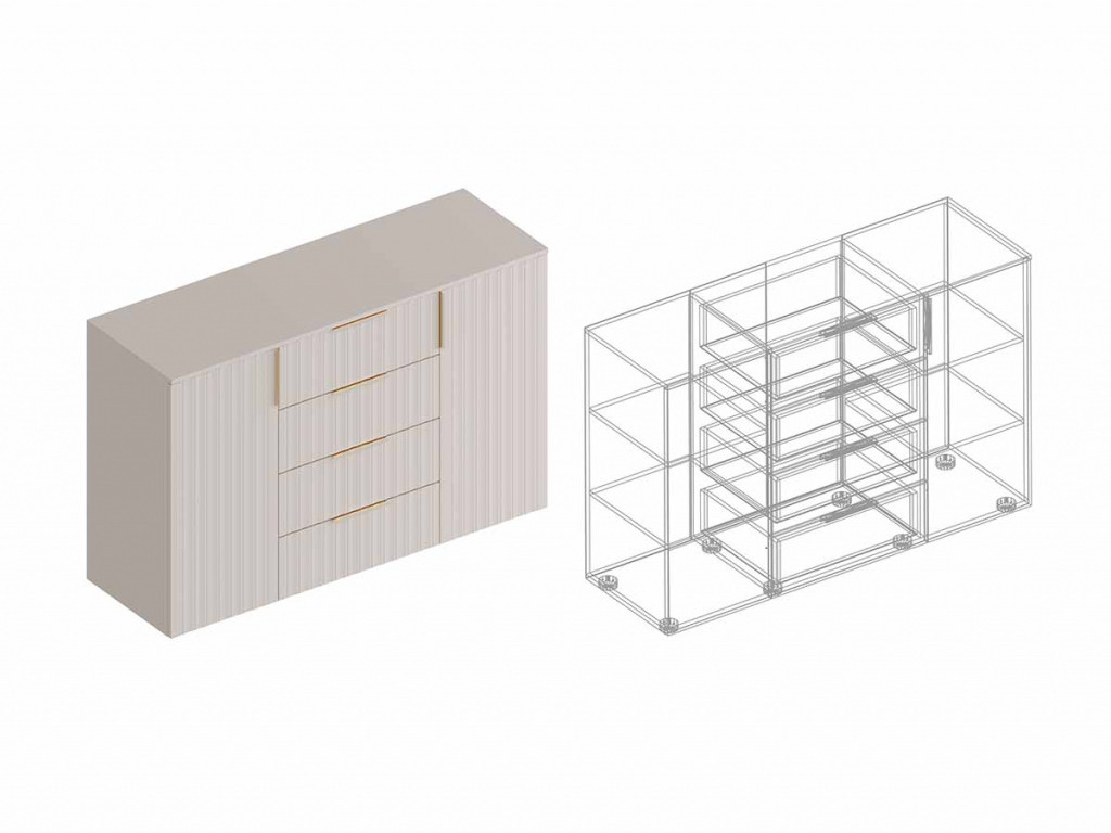 - Комод Тефия 2-створки с 4 ящиками