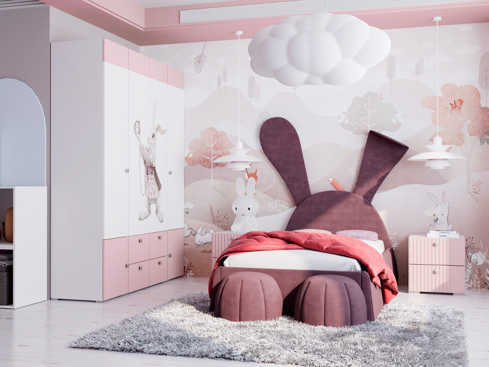 - ПМ-332.18 Кровать с мягкой обивкой с 2мя ящ. (сп/м 900*2000мм), велюр розовый НАСТИЛ