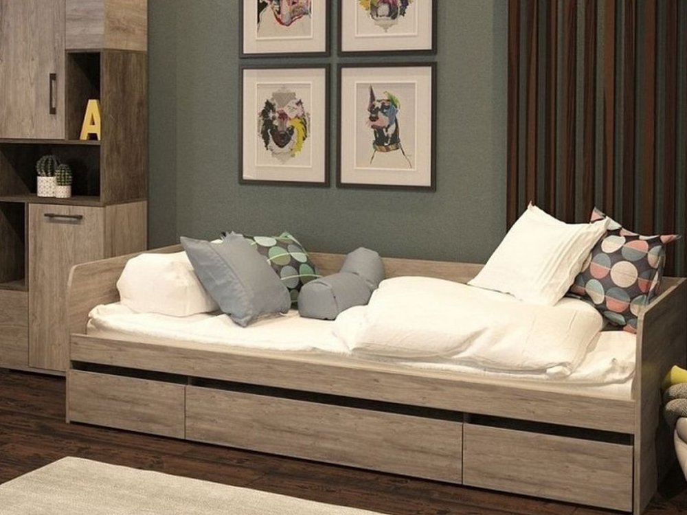 Цена за комплект: Кровать с ящиками, Стол письменный, Д-10 Пенал открытый, Д-11 Стеллаж