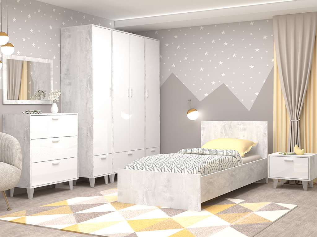 - Детская Эго бетон светлый/белый глянец
