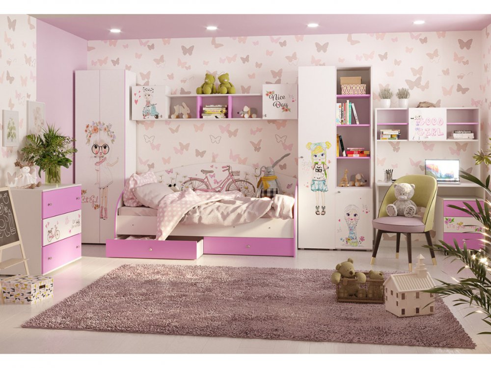 Цена указана за комплект на фото: Комод с 3-мя ящиками, Шкаф 600 для одежды (ДО), Полка навесная ДМ, Кровать на ламелях, Шкаф 400 для белья (ДБ), Шкаф 400 1Д, Стол письменный, Тумба для стола выкатная, Надстройка для стола