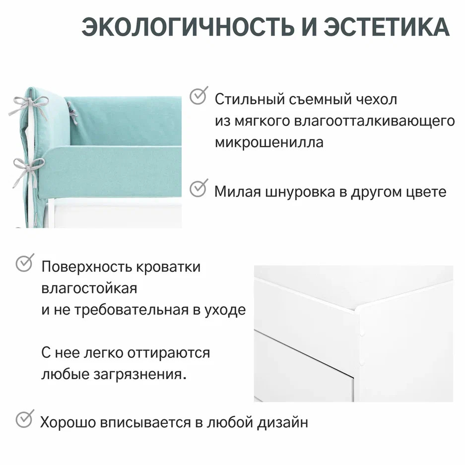 Чтобы не бояться, что ребенок упадет с кроватки, можно приобрести дополнительный съемный бортик.