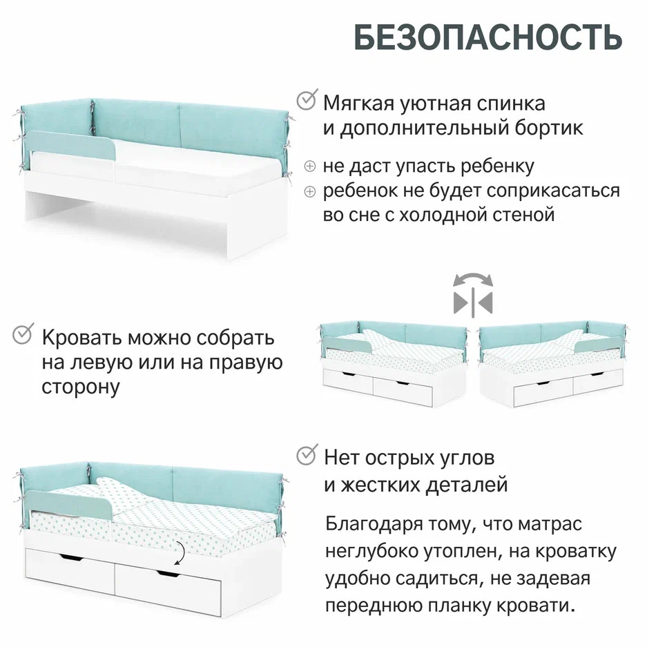 - Детская мягкая кровать Denvas с бортиком эвкалипт