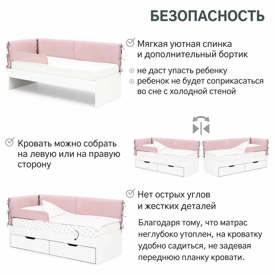 - Детская мягкая кровать Denvas с бортиком пыльная роза