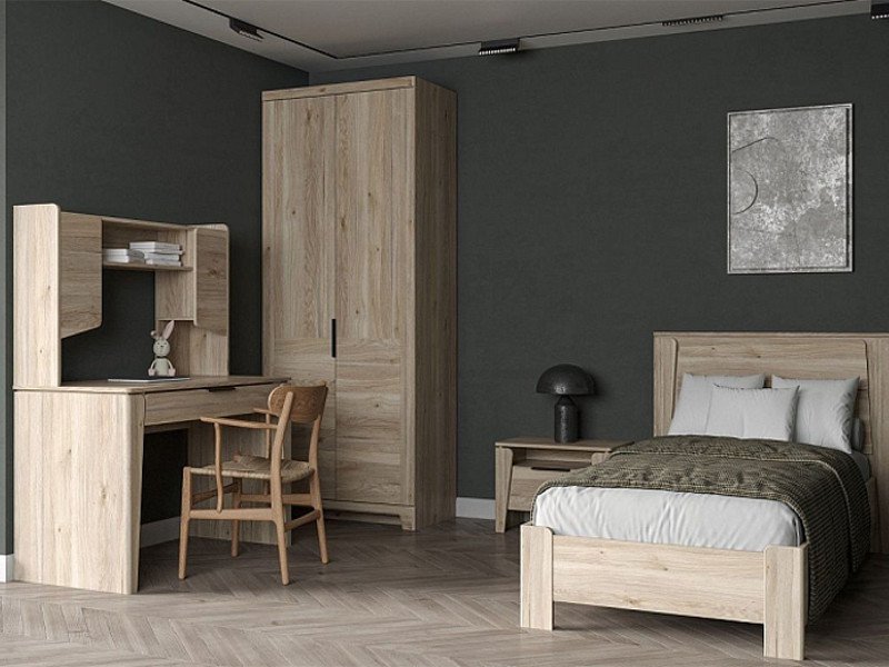 Цена за комплект: Кровать 900, Ортопедическое основание 900, Тумба прикроватная. Стол письменный, Надстройка, Шкаф для одежды 2-х дверный