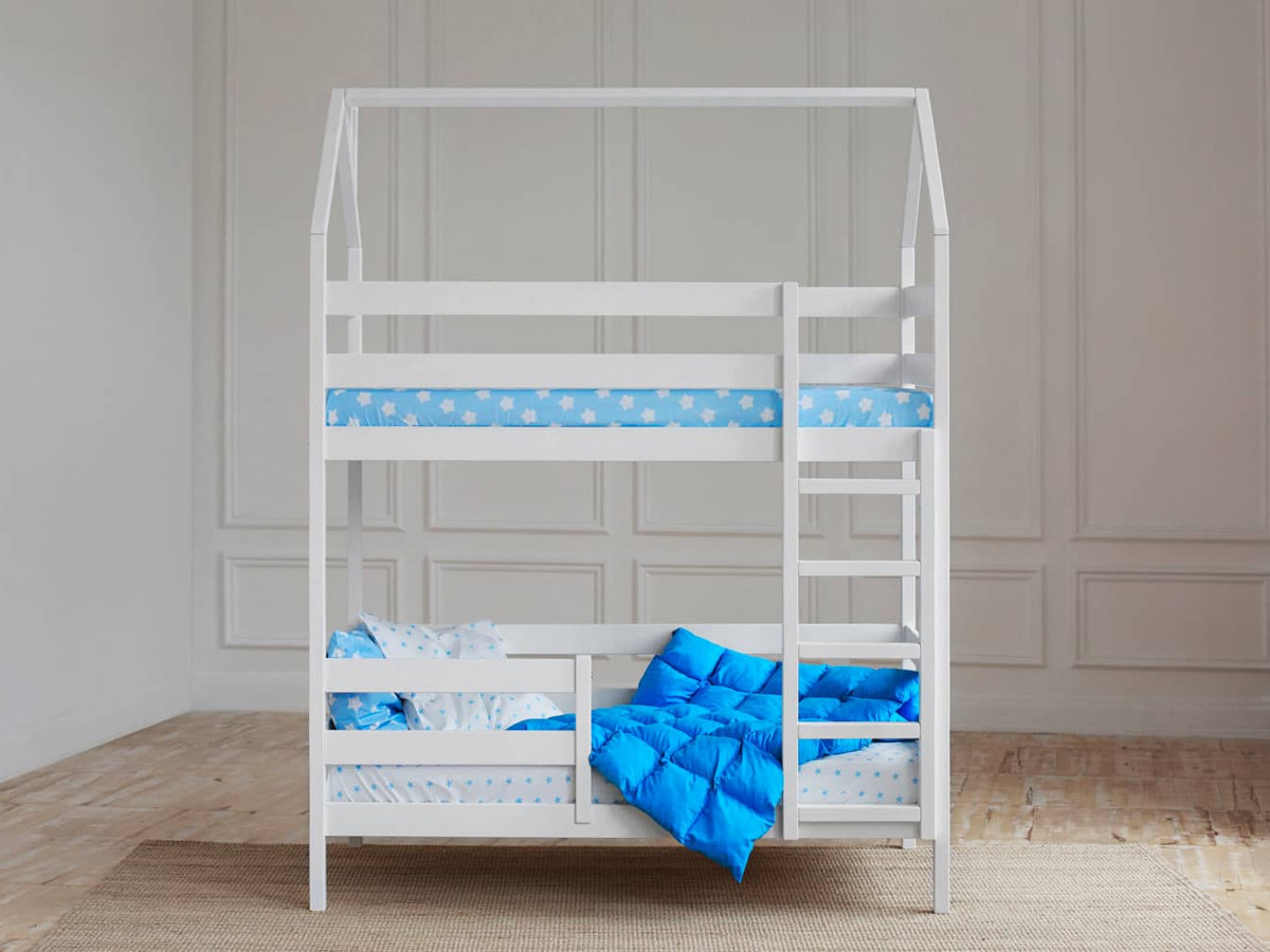 - Двухъярусная кровать-домик белый 80х190 см