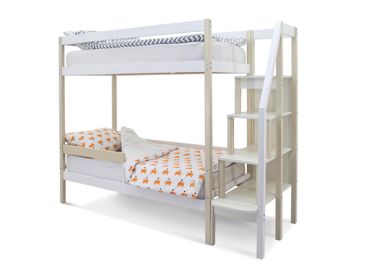 Двухъярусная кровать Svogen с бортиком бежево-белый