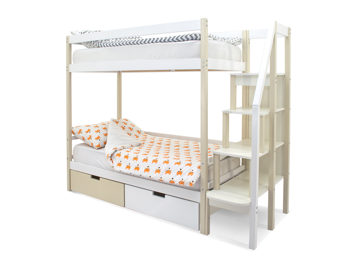 Двухъярусная кровать Svogen с ящиками бежево-белый