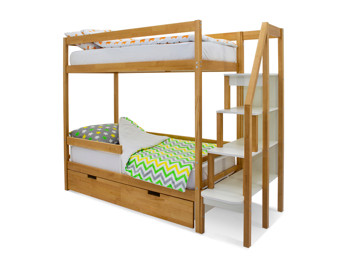 Двухъярусная кровать Svogen с ящиками и бортиком дерево