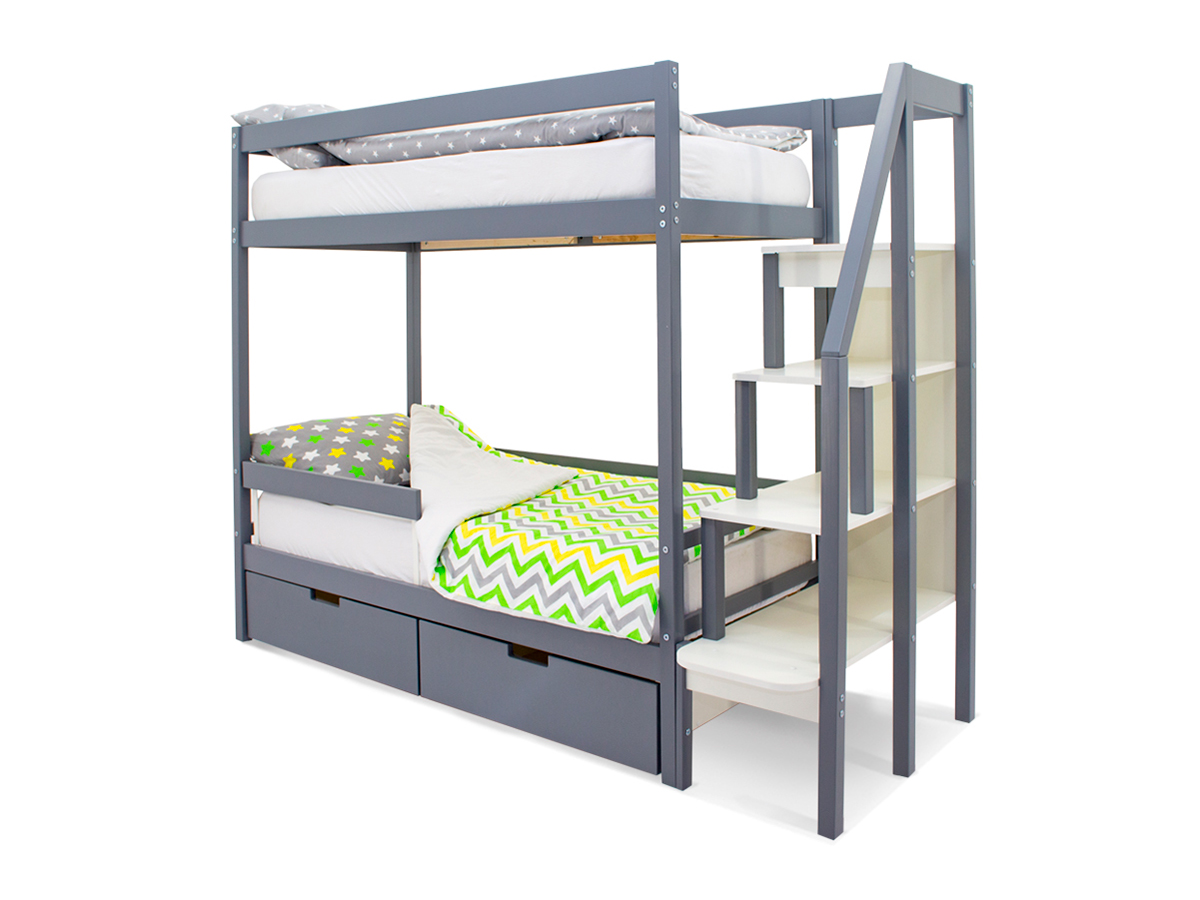 - Двухъярусная кровать Svogen с ящиками и бортиком графит