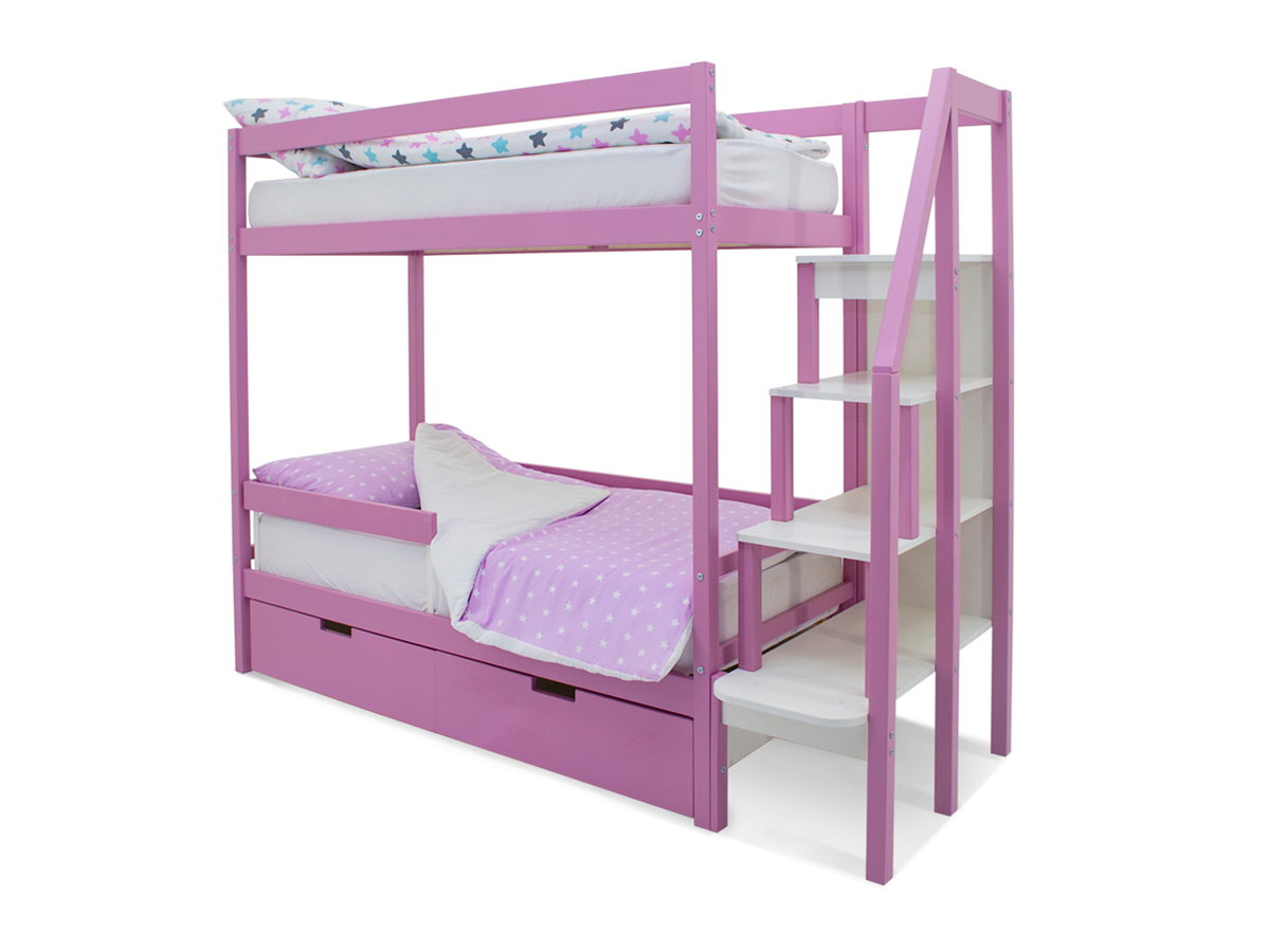 Двухъярусная кровать Svogen с ящиками и бортиком лаванда