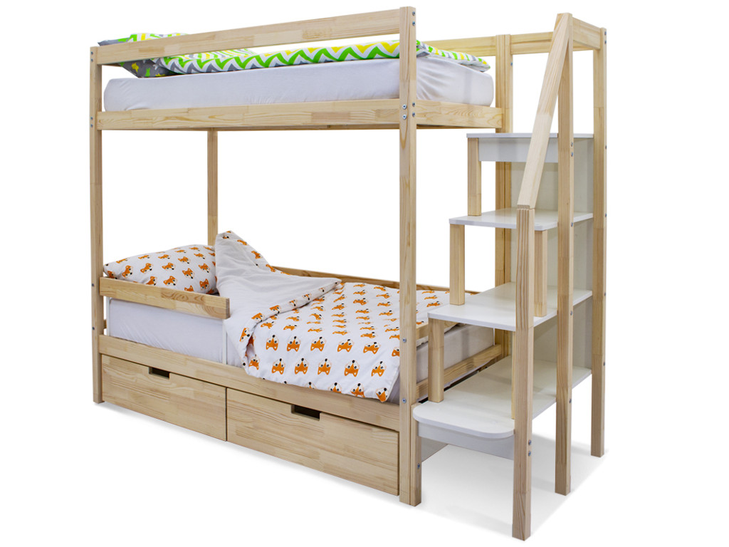 Двухъярусная кровать Svogen с ящиками и бортиком натура без покрытия