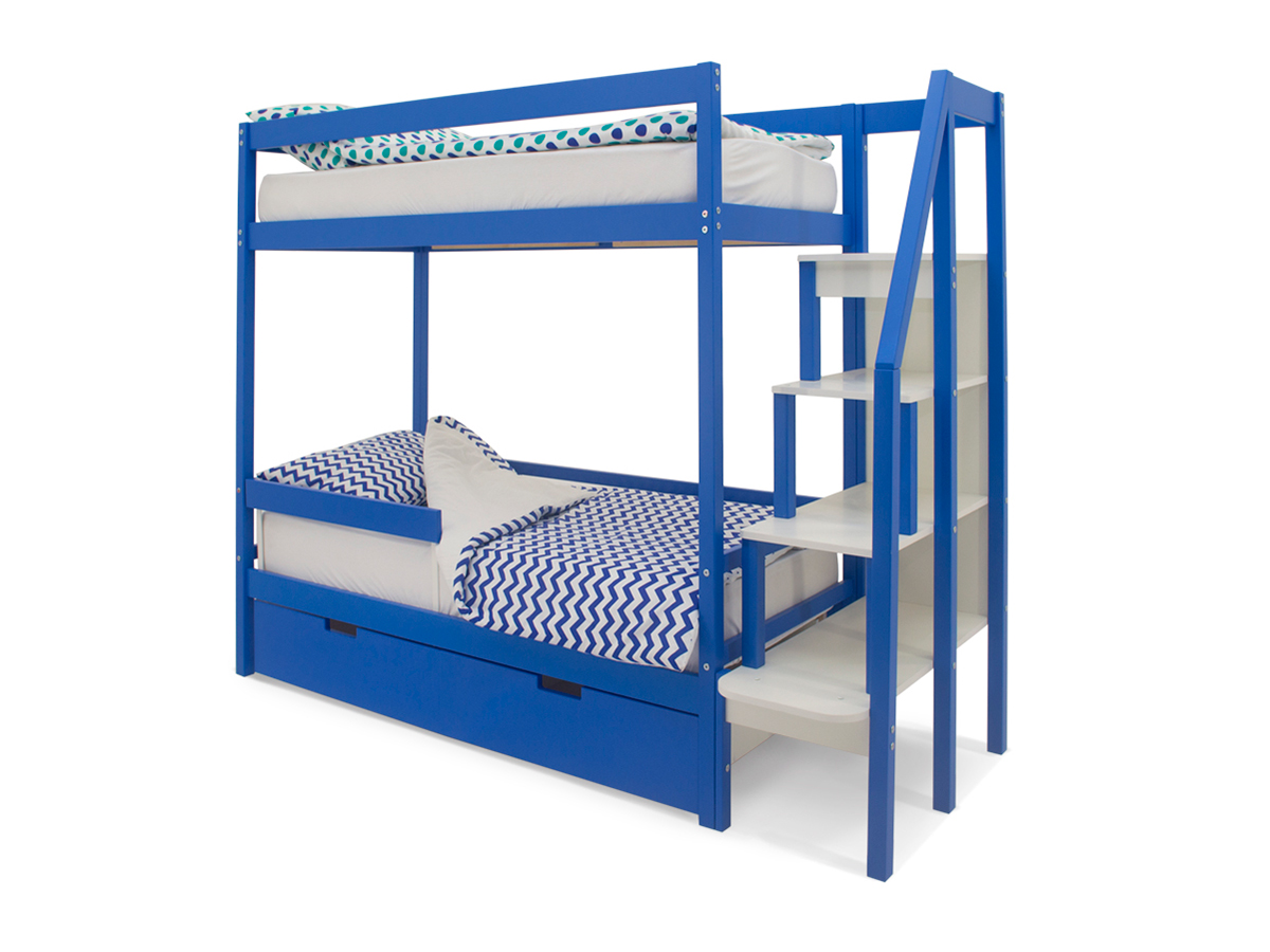 Двухъярусная кровать Svogen с ящиками и бортиком синий