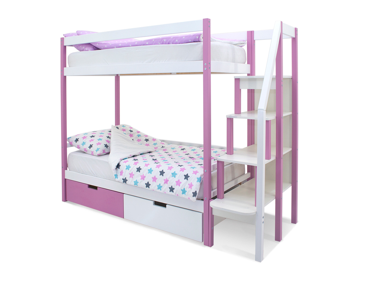 Двухъярусная кровать Svogen с ящиками лаванда-белый