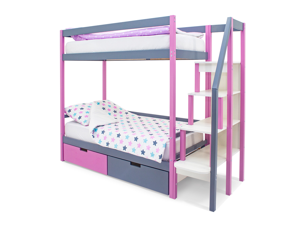 Двухъярусная кровать Svogen с ящиками лаванда-графит