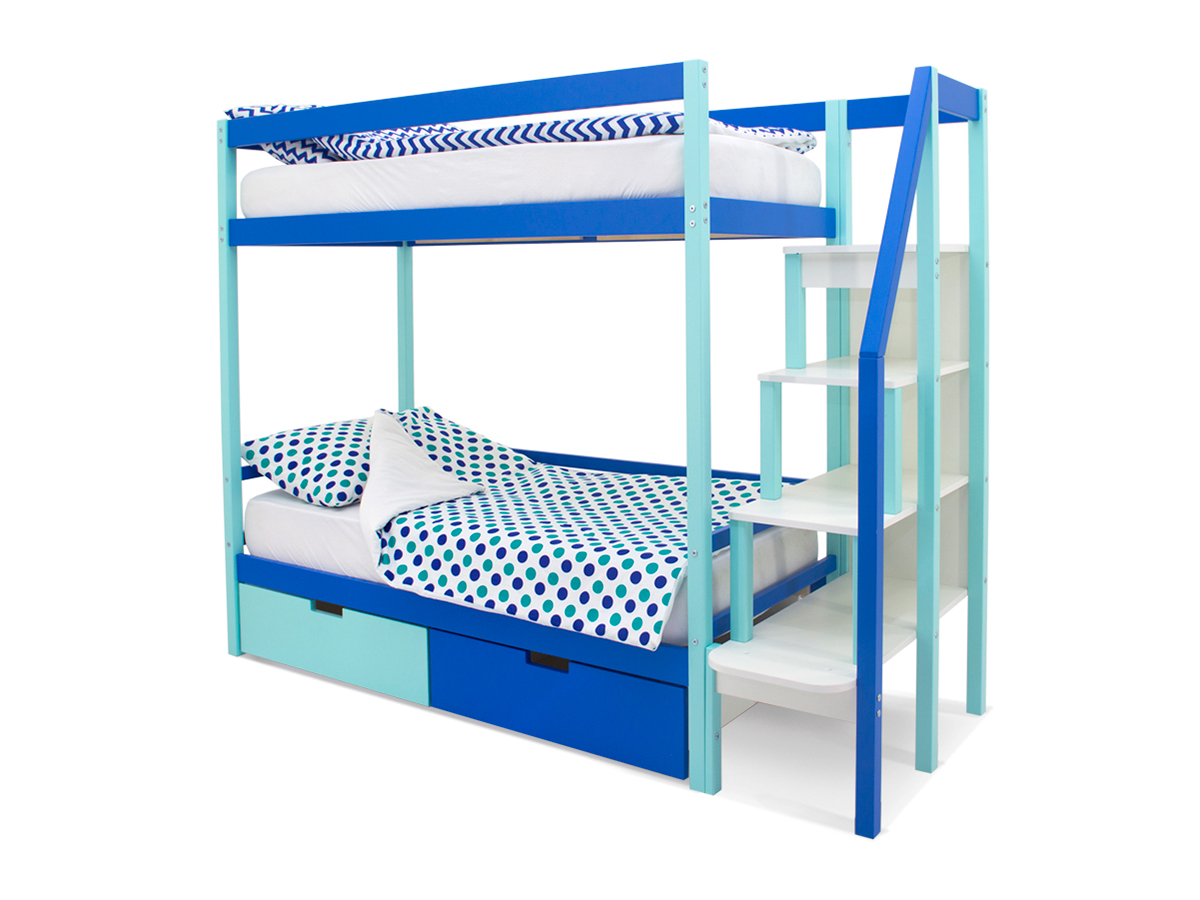Двухъярусная кровать Svogen с ящиками мятно-синий