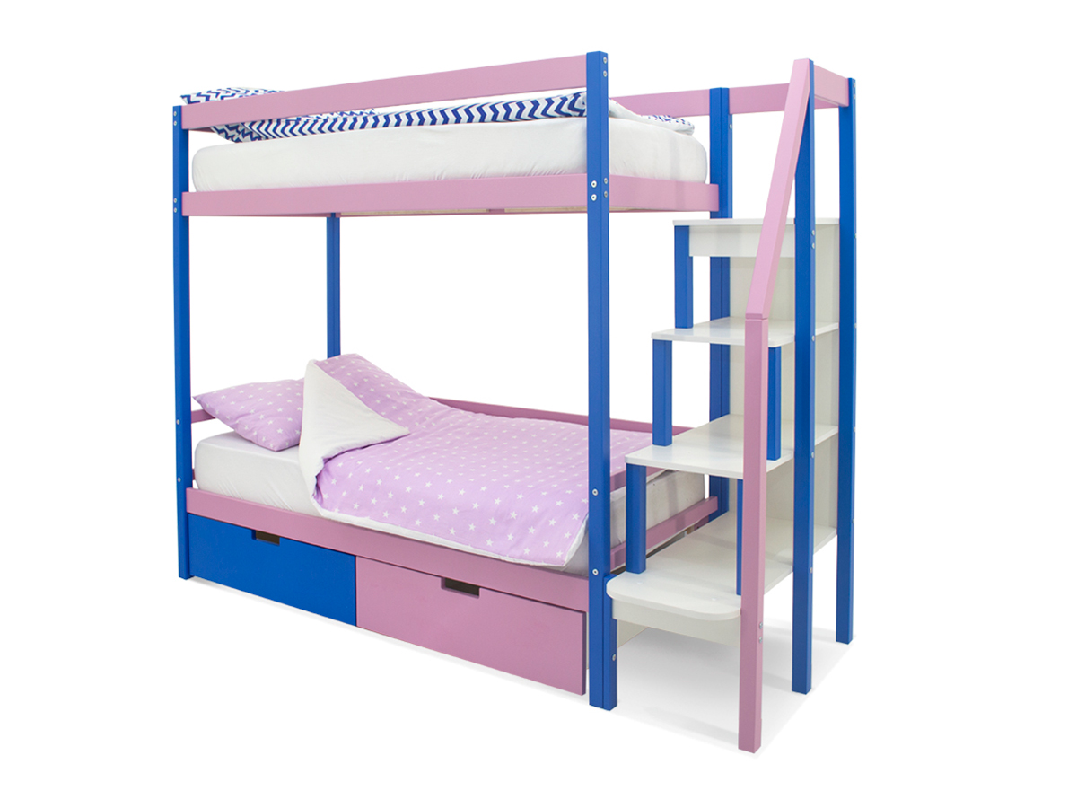 Двухъярусная кровать Svogen с ящиками синий-лаванда