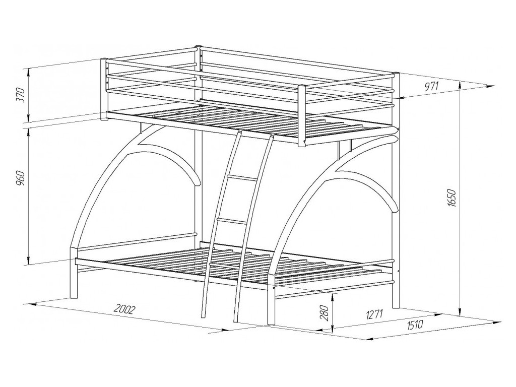 Размер нижнего спального места: 1200х1900 мм