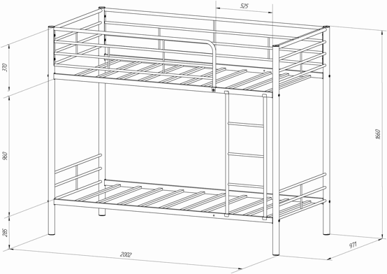 размер нижнего/верхнего сп. места 900х1900 мм
