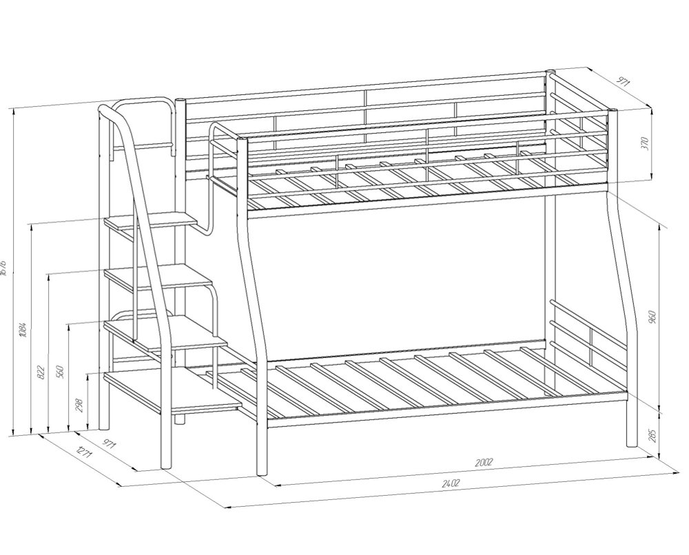 - Двухъярусная кровать Толедо 1 ПЯ черный молочный