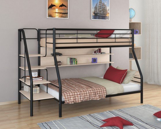 - Двухъярусная кровать Толедо 1П черный молочный