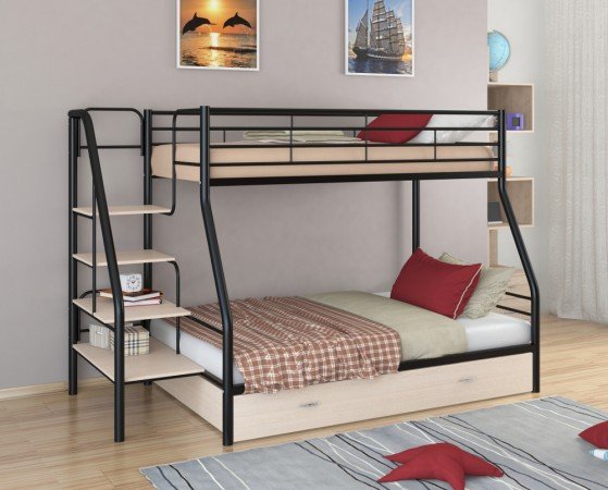 - Двухъярусная кровать Толедо 1Я черный молочный