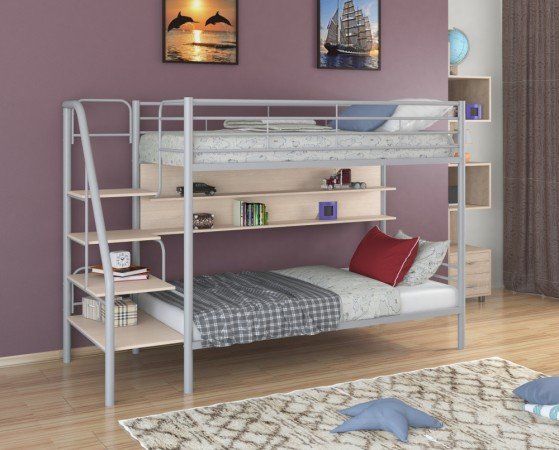 - Двухъярусная кровать Толедо П серый/молочный
