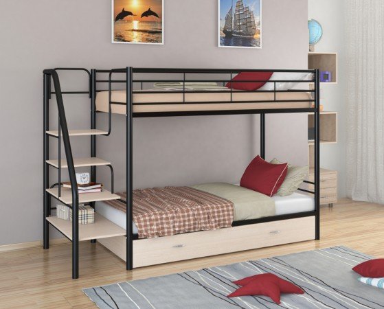 - Двухъярусная кровать Толедо Я черный дуб молочный