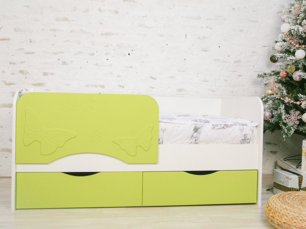 - Кровать Бабочка белый/салатовый софт