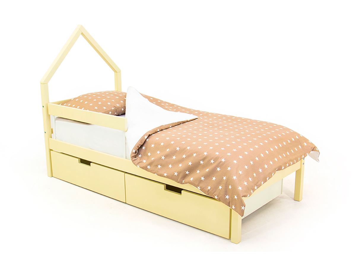 - Кровать-домик мини Svogen с ящиками и бортиком бежевый