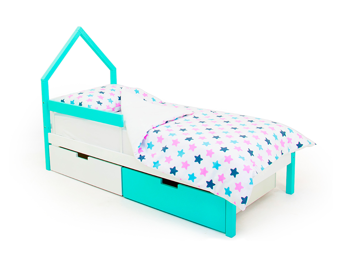 - Кровать-домик мини Svogen с ящиками и бортиком мятно-белый