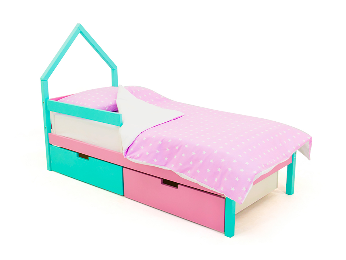 - Кровать-домик мини Svogen с ящиками и бортиком мятный-лаванда