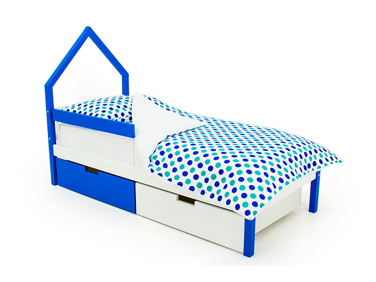 - Кровать-домик мини Svogen с ящиками и бортиком сине-белый