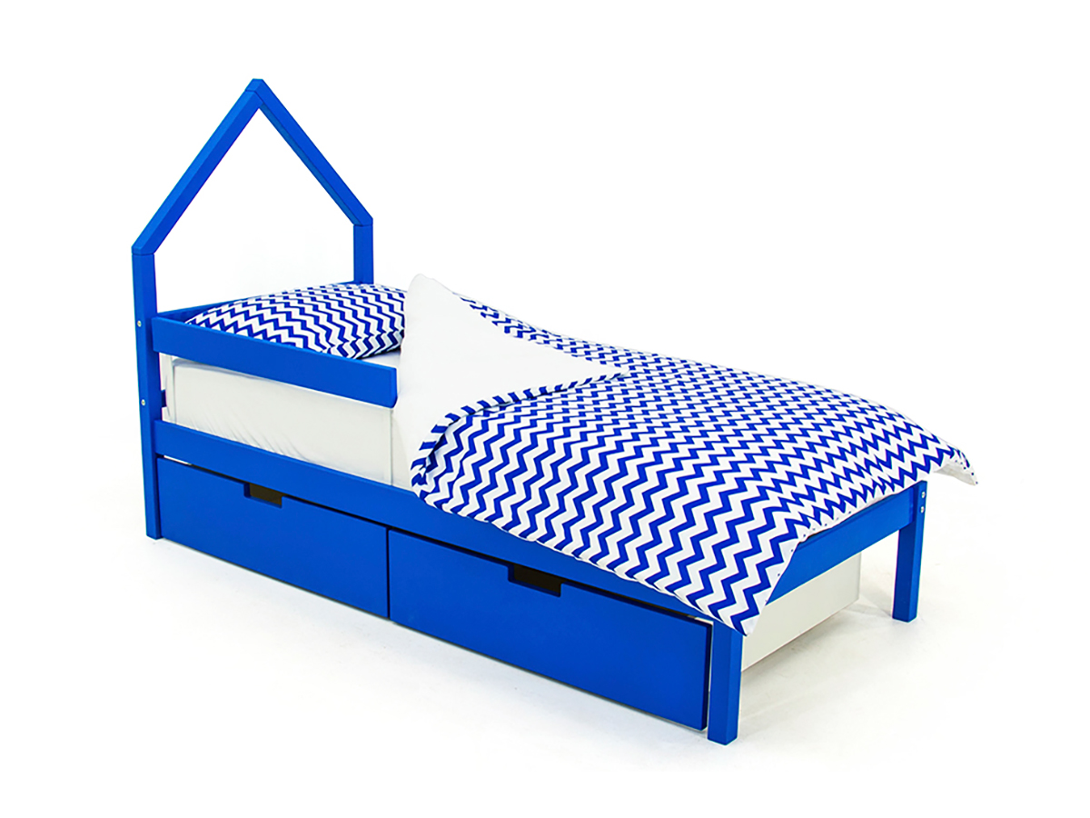 Кровать-домик мини Svogen с ящиками и бортиком синий
