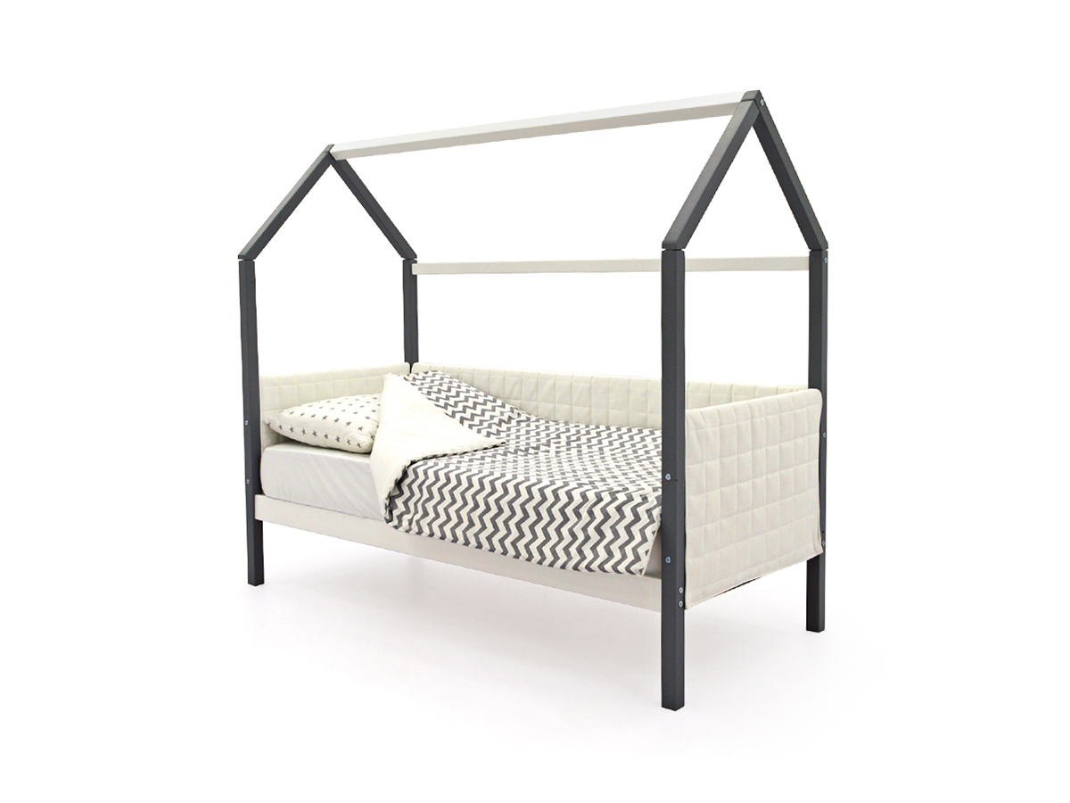 Кровать-домик мягкий Svogen графит-белый