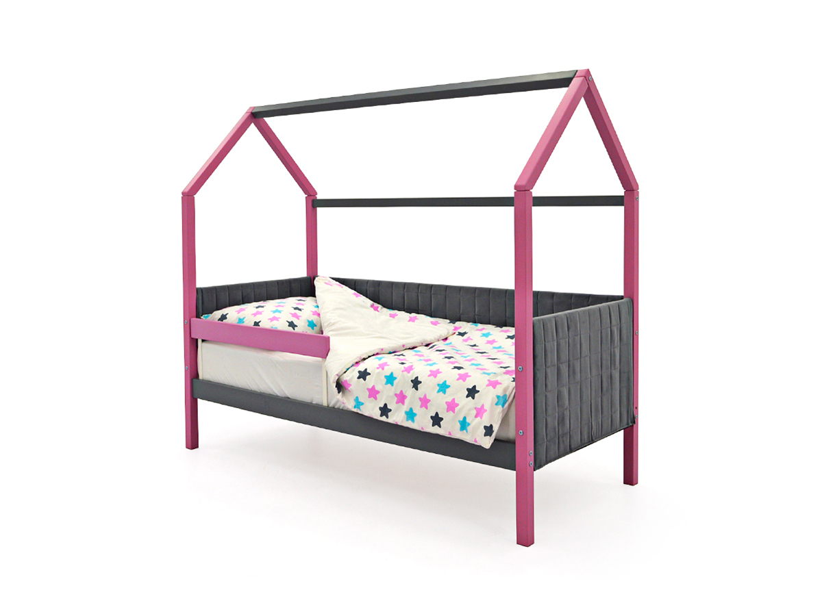 - Кровать-домик мягкий Svogen с бортиком лаванда-графит