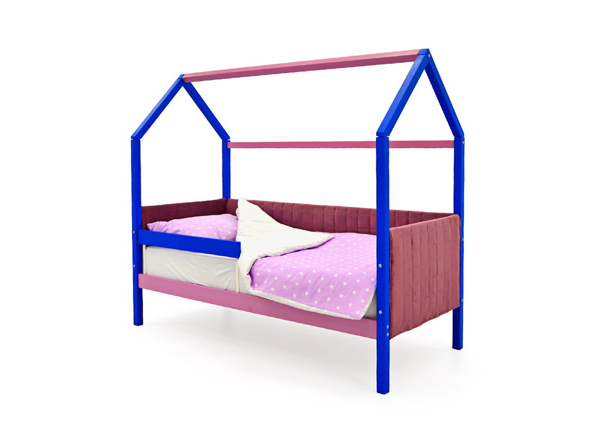 - Кровать-домик мягкий Svogen с бортиком синий-лаванда