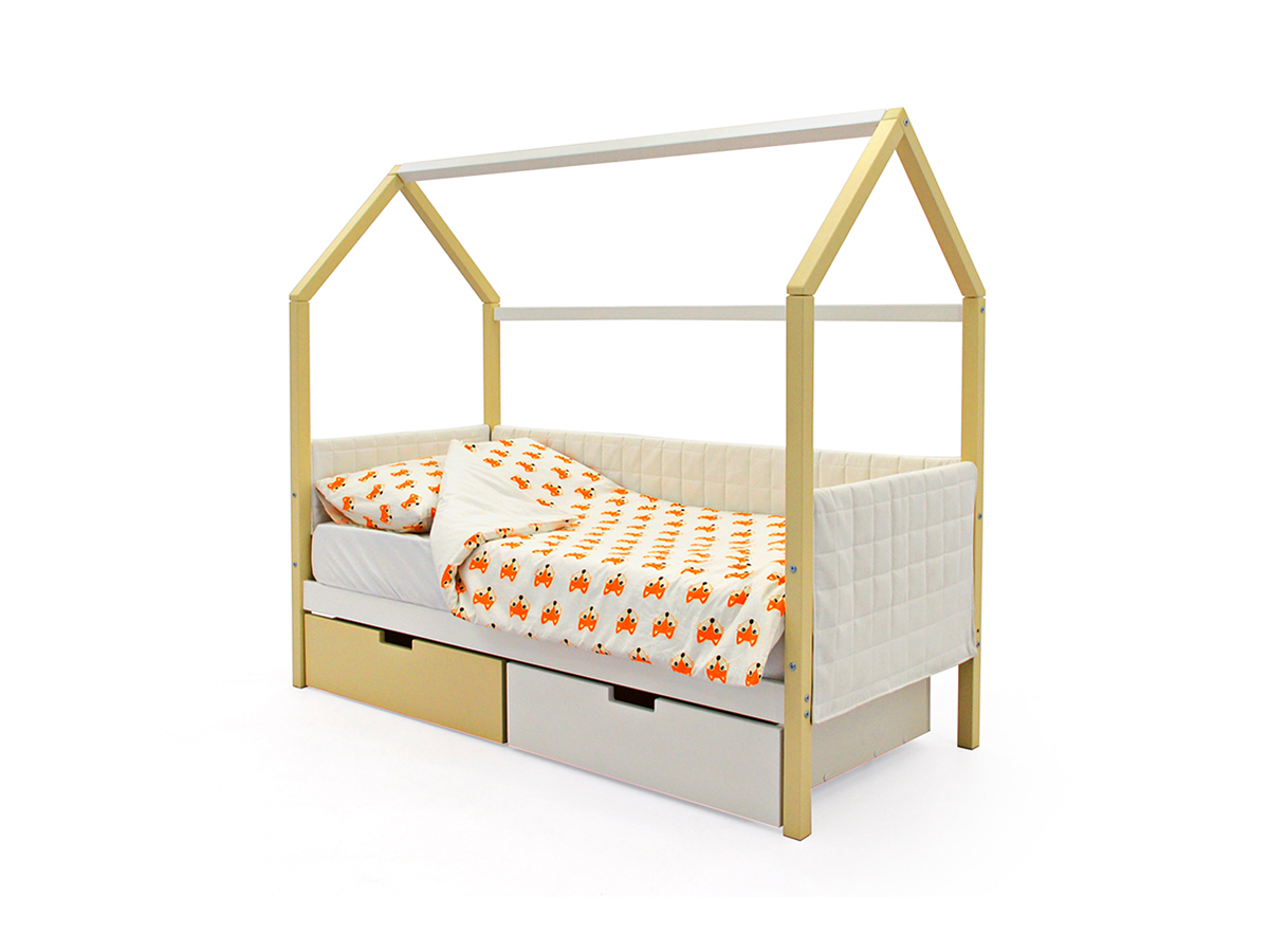 - Кровать-домик мягкий Svogen с ящиками бежево-белый