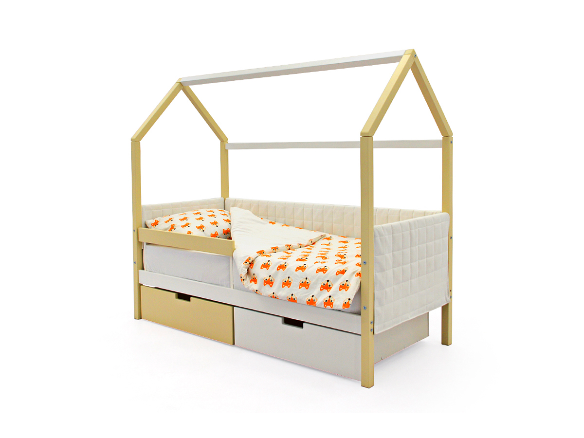 Кровать-домик мягкий Svogen с ящиками и бортиком бежево-белый