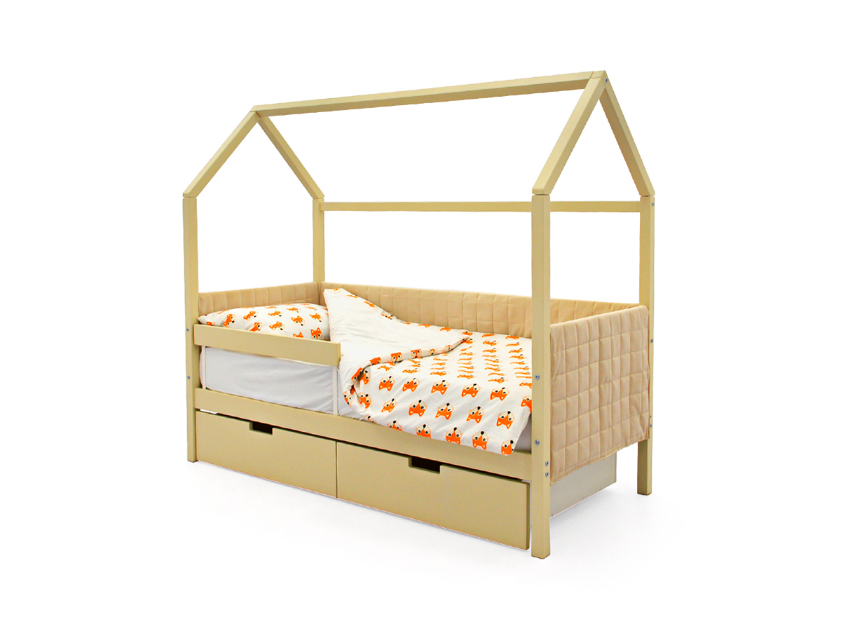 Кровать-домик мягкий Svogen с ящиками и бортиком бежевый