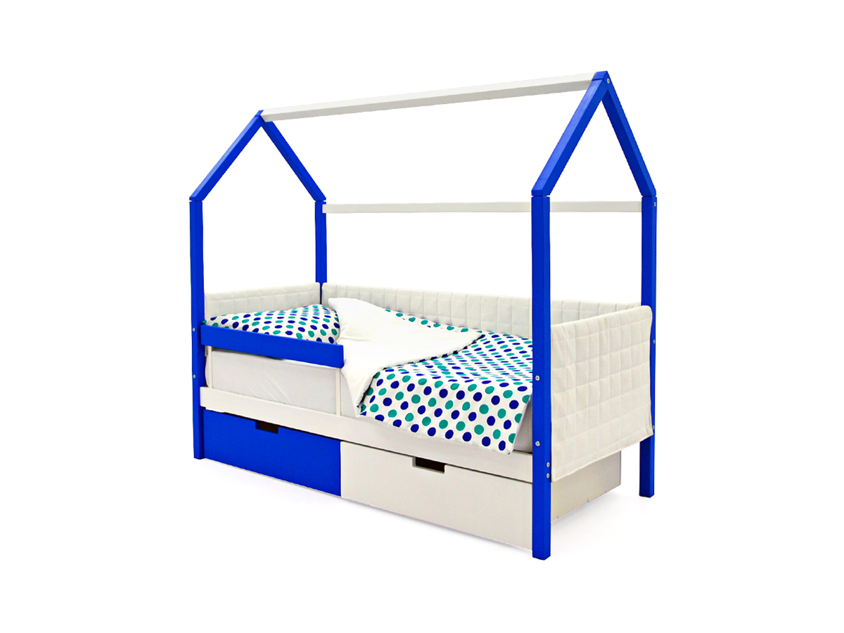 Кровать-домик мягкий Svogen с ящиками и бортиком сине-белый