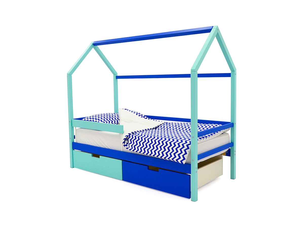 - Кровать-домик Svogen с ящиками и бортиком мятно-синий